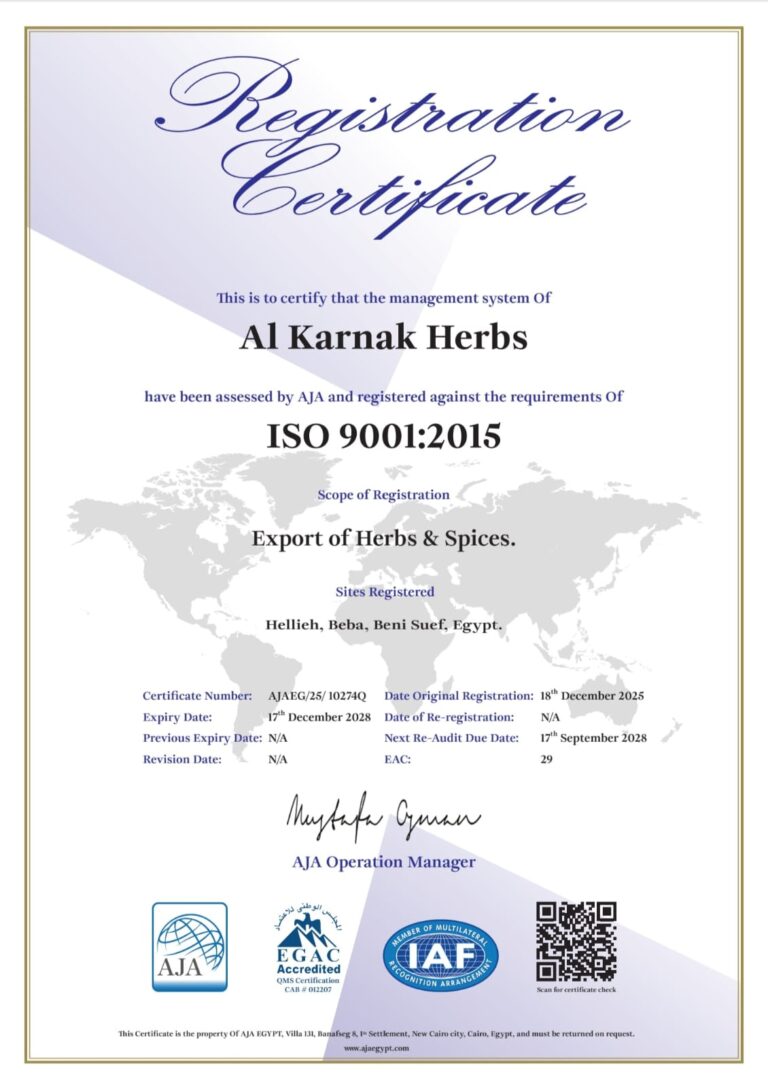 Is a leading Egyptian company specialized in Growing, producing, and Exporting dried herbs, spices, and seeds all over the world.